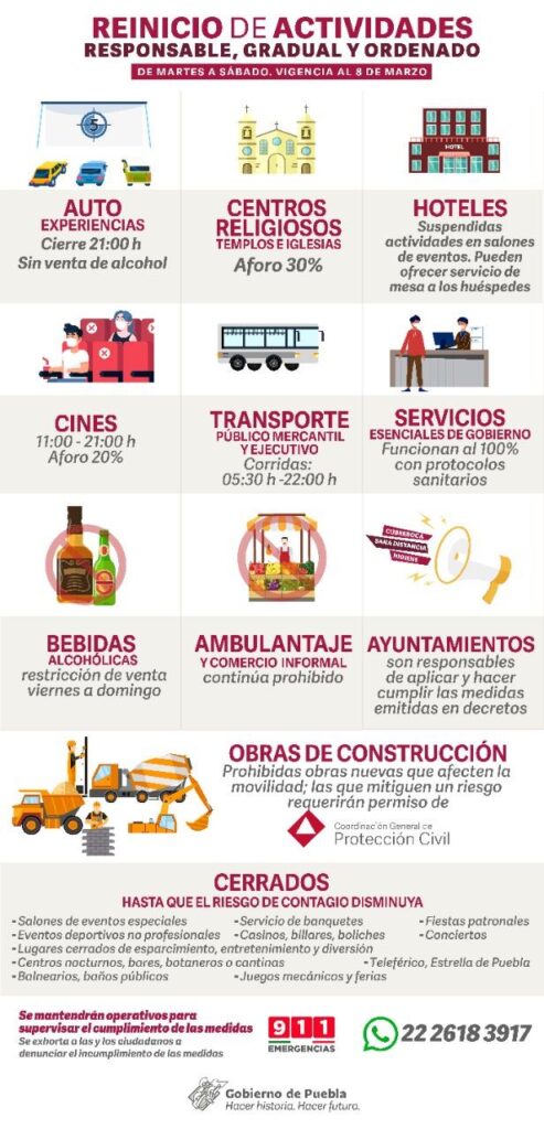 El gobierno del estado de Puebla extendió una vez más las pautas actuales para la pandemia por 15 días, del 23 de febrero al 8 de marzo.