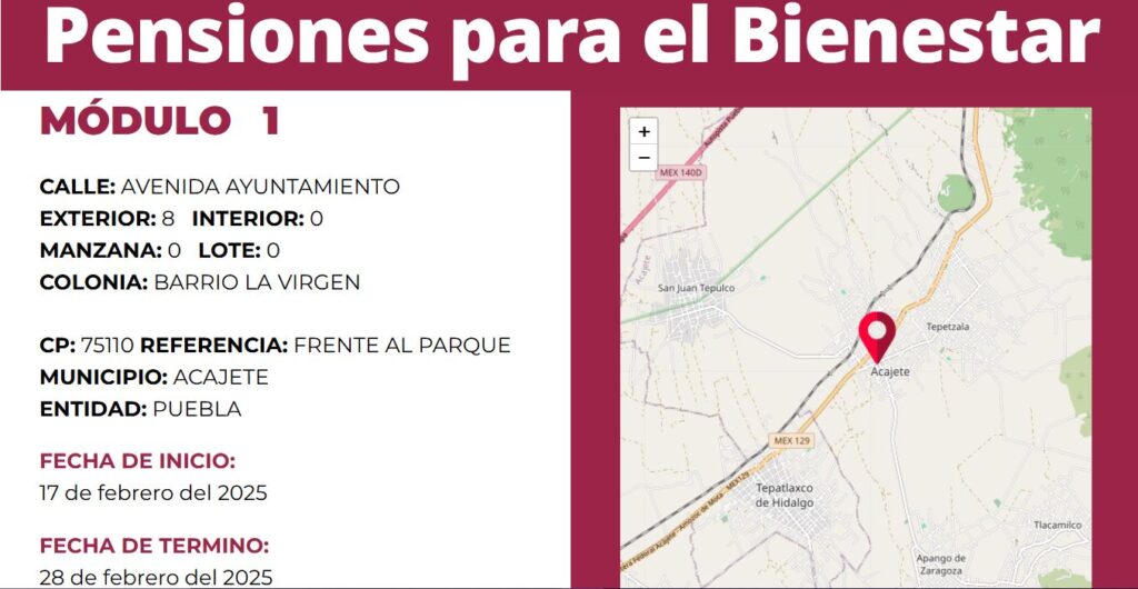 Ubicación del módulo en Acajete: