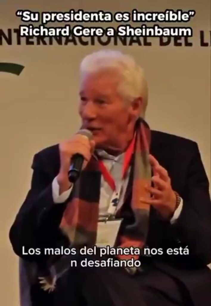 Aunque Gere no reaccionó de inmediato al descontento del público, su postura quedó clara más adelante. Minutos después, el actor salió en defensa de Sheinbaum con palabras directas y elogiosas, un momento que rápidamente se volvió viral en redes sociales.