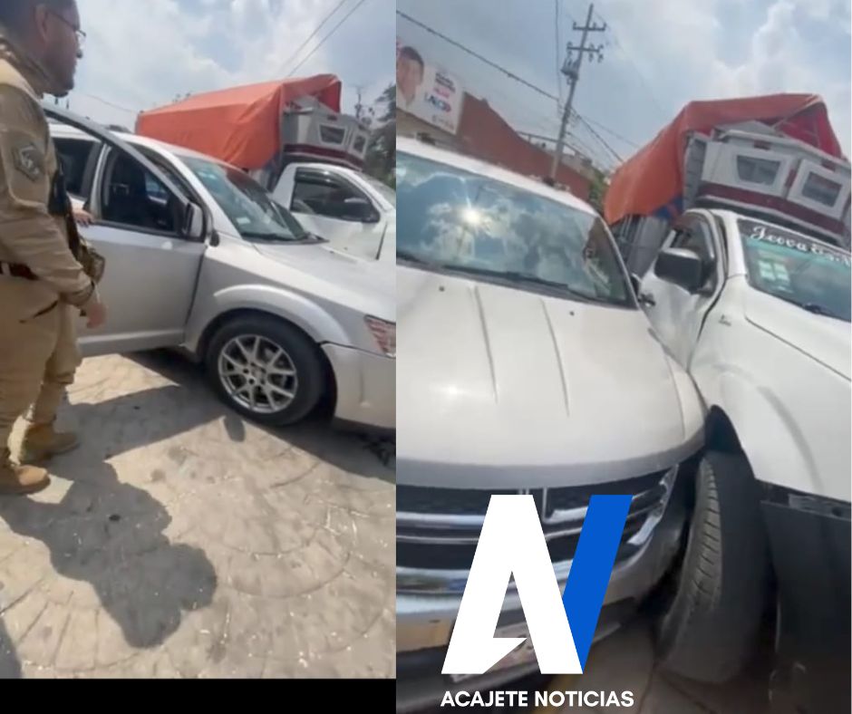 Acajete.- Nos hacen llegar estas imágenes de un accidente que ocurrió hace aproximadamente una hora, el accidente fue entre dos camionetas, en donde aparentemente una mujer al volante se impacto con otra camioneta, todo esto en la Avenida Ayuntamiento de la cabecera municipal, a un lado del parque.