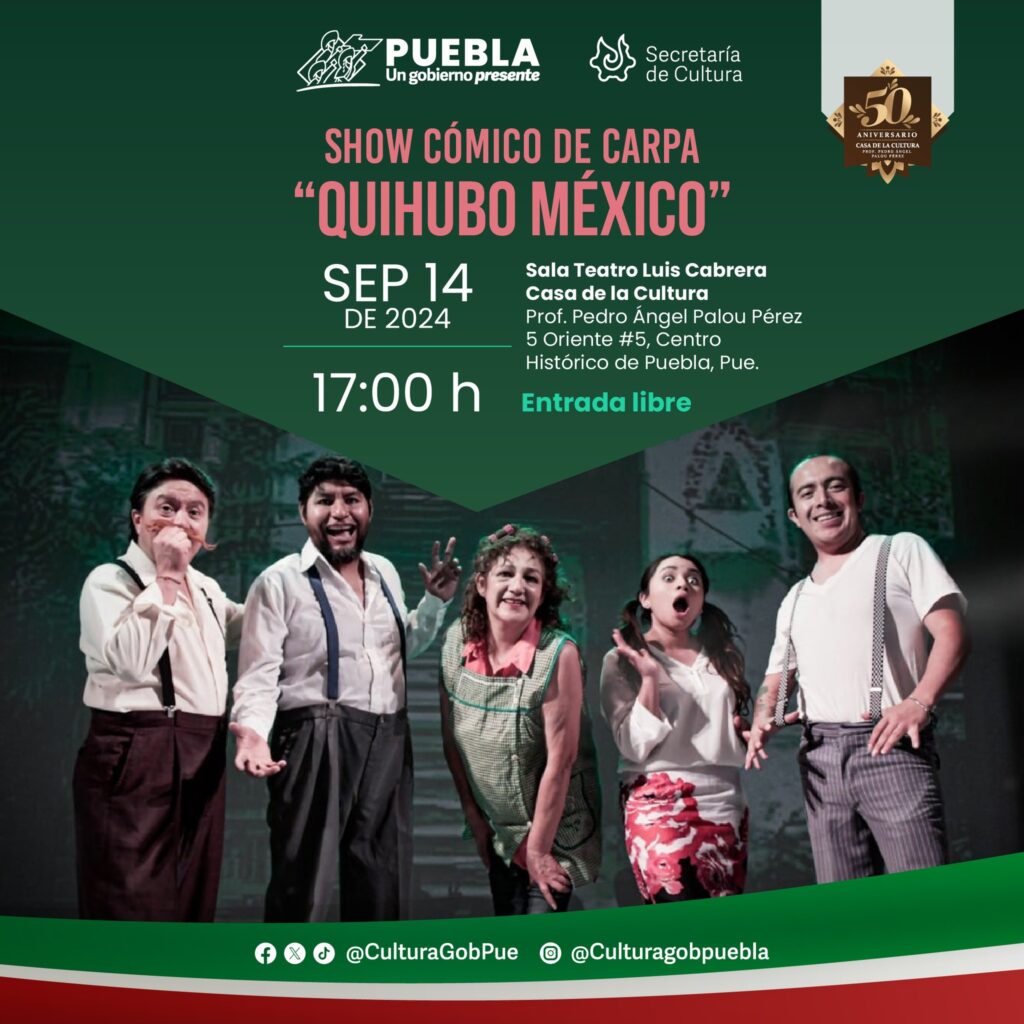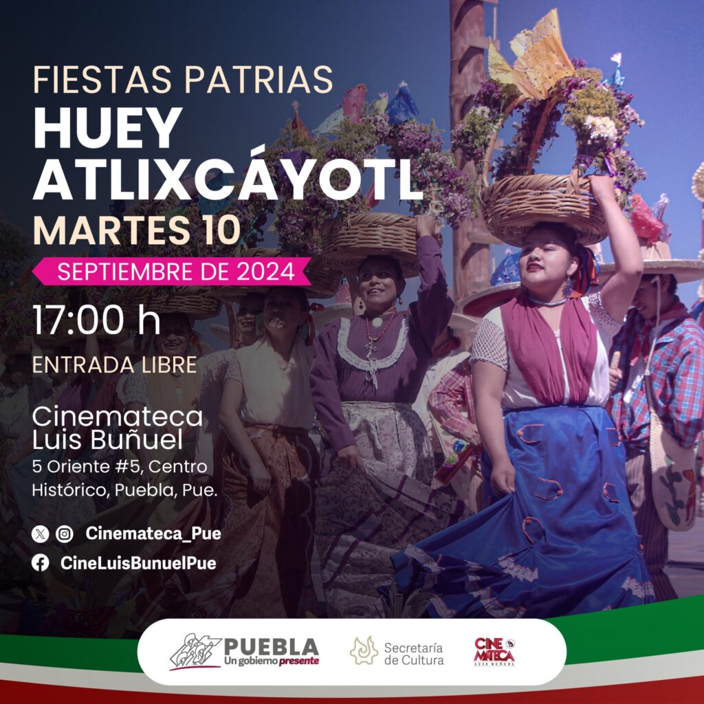 Otra presentación que también tendrá lugar en este lugar, será la puesta en escena “Quihubo México”, de la compañía Omnia Teatro Mx, la cual también se llevará el mismo 14, en punto de las 17:00 horas, así como y la proyección del documental “Huey Atlixcáyotl” dentro de la Cinemateca “Luis Buñuel”, esta se realizará el día martes 10 de septiembre a las 17:00 horas.