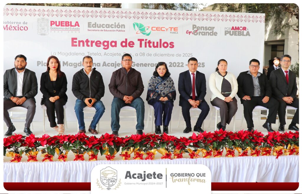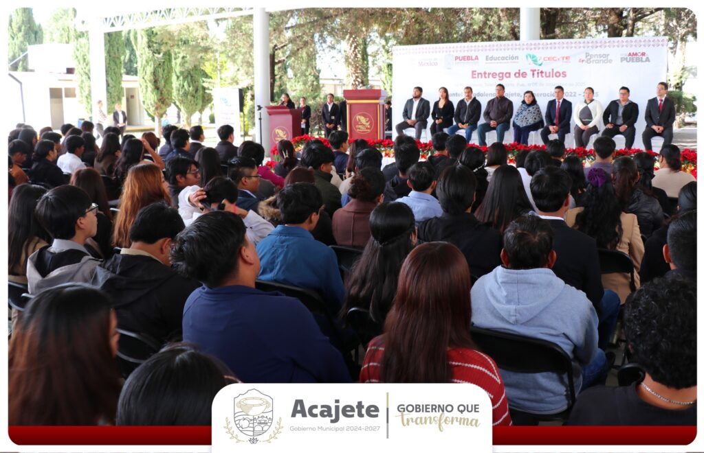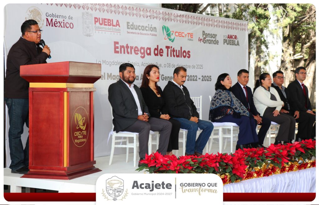 El CECyTE Plantel La Magdalena llevó a cabo la entrega de títulos a la Generación 2022–2025, en una ceremonia donde el alcalde de Acajete, Cristian Flores Flores, asistió como invitado especial junto a integrantes del H. Ayuntamiento 2024–2027.