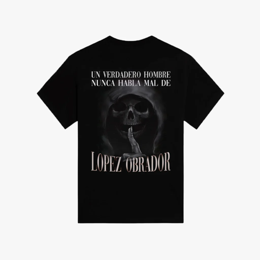 El presidente Andrés Manuel López Obrador reaccionó a las playeras que se viralizaron el fin de semana en redes sociales por tener una imagen similar a la ‘santa muerte’ y la frase: “Un verdadero hombre nunca habla mal de López Obrador”, afirmando que respeta “lo que hacen los ciudadanos” y que esto es un tema ligado a la libertad en general, pero principalmente la religiosa.