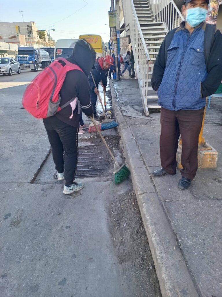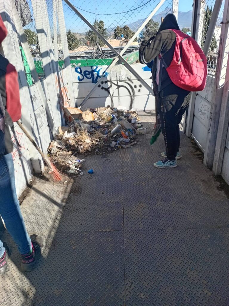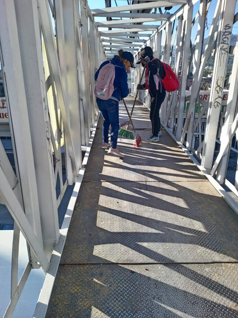 Con un enfoque de trabajo en equipo, el personal municipal se dedicó a realizar la limpieza profunda de los puentes peatonales, eliminando la basura acumulada y garantizando que las áreas comunes estuvieran en las mejores condiciones.