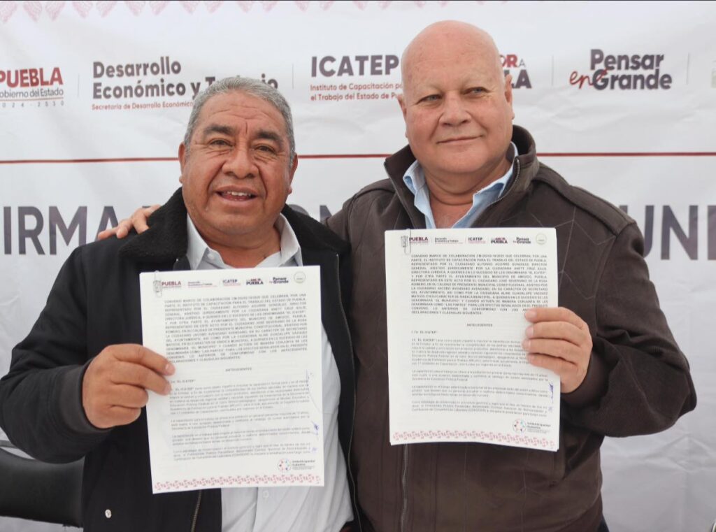 Amozoc de Mota, Pue. – En un esfuerzo por promover el desarrollo educativo y productivo del municipio, el presidente municipal de Amozoc, Severiano de la Rosa, firmó un importante convenio de colaboración con el Instituto de Capacitación para el Trabajo del Estado de Puebla (ICATEP), actualmente representado por el Mtro. Alfonso Aguirre González, director general de la institución.