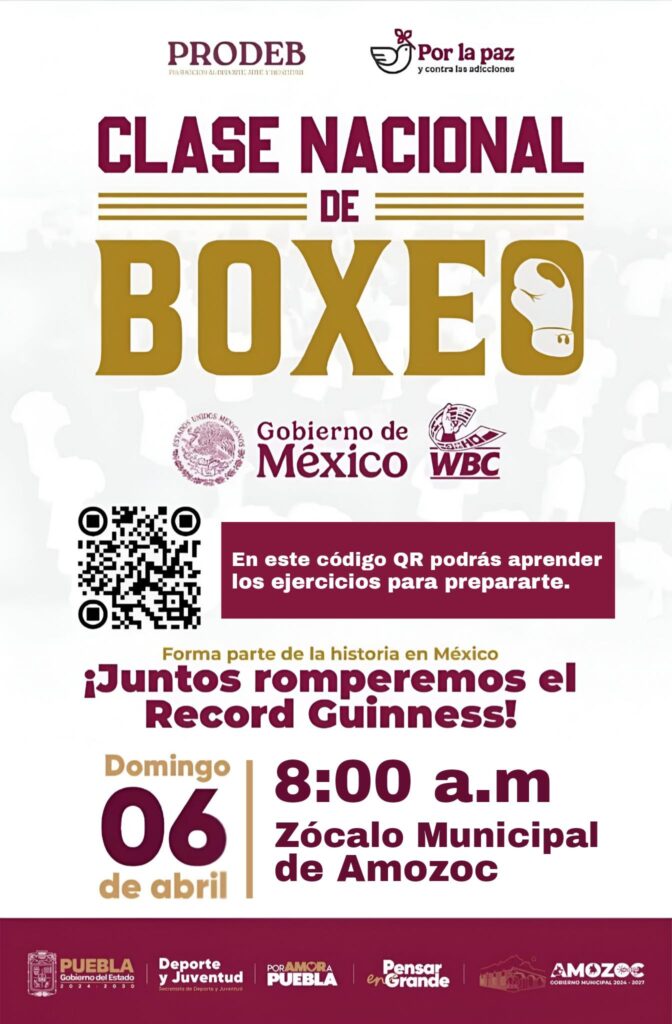 Amozoc, Pue. – El presidente municipal Severiano de la Rosa Romero anunció con entusiasmo la participación de Amozoc en la Clase Nacional de Boxeo “Boxeando por la Paz”, un evento impulsado por la presidenta de México, Claudia Sheinbaum Pardo, con el objetivo de fomentar valores como el respeto, la disciplina y la paz, a través del deporte.