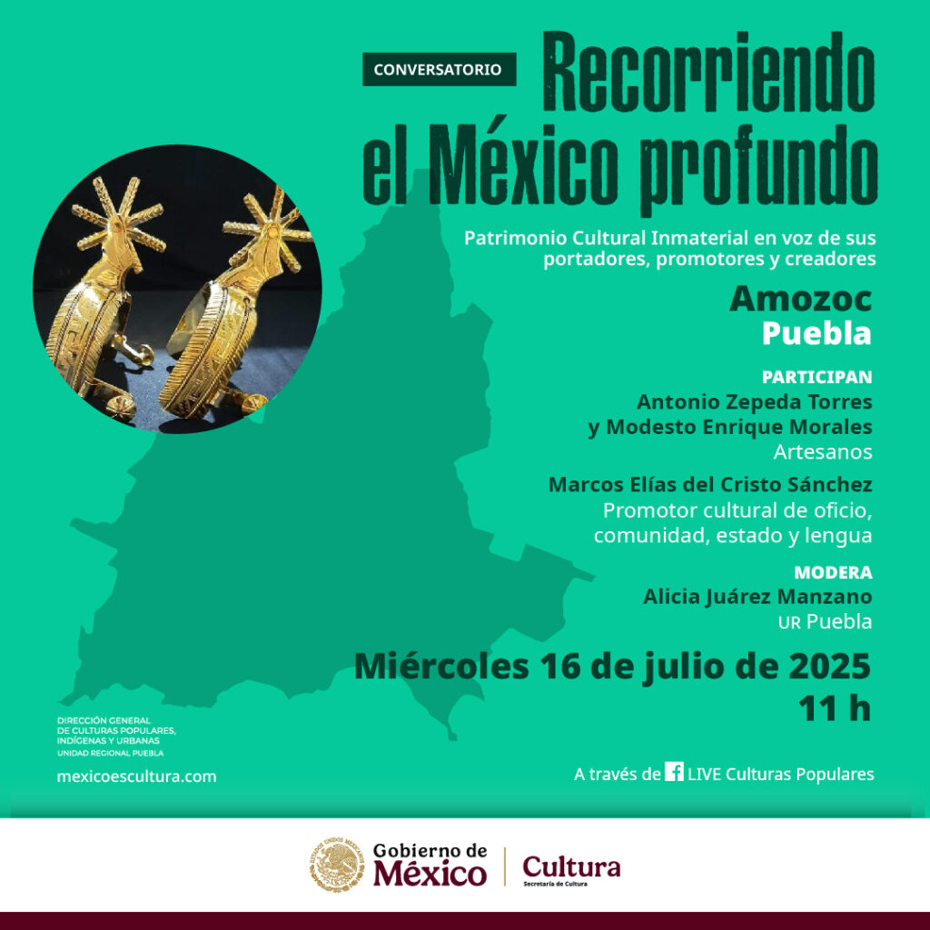 La Dirección General de Culturas Populares, Indígenas y Urbanas, perteneciente a la Secretaría de Cultura del Gobierno de México, invita cordialmente al público en general a seguir la transmisión en vivo del próximo conversatorio “Recorriendo el México profundo”, el cual estará dedicado en esta edición al municipio de Amozoc, en el estado de Puebla.