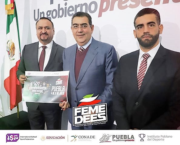 La mesa de trabajo estuvo presidida por el gobernador de Puebla, Sergio Salomón Céspedes Peregrina, por el director del Instituto Poblano del Deporte, Luis Mauricio Suárez y el presidente de FEMEDFEES, Martí Sánchez Tenorio.