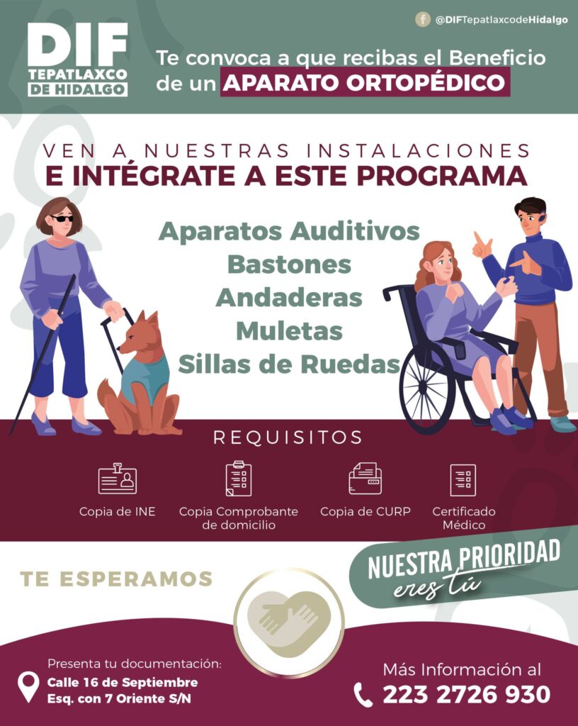 Tepatlaxco de Hidalgo, Pue.- El DIF Municipal de Tepatlaxco de Hidalgo ha lanzado una convocatoria abierta a la ciudadanía para obtener el beneficio de aparatos ortopédicos, buscando mejorar la calidad de vida de las personas que más lo necesitan.