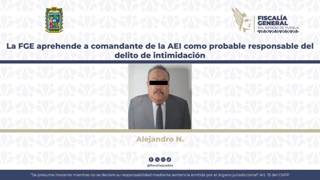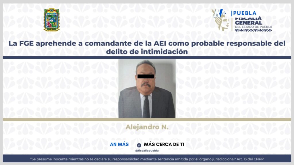 Tras tener conocimiento de estos hechos, la FGE llevó a cabo actos de investigación y reunió los datos de prueba necesarios para solicitar la orden de aprehensión, la cual fue ejecutada en inmediaciones de la colonia El Carmen, en la ciudad de Puebla.