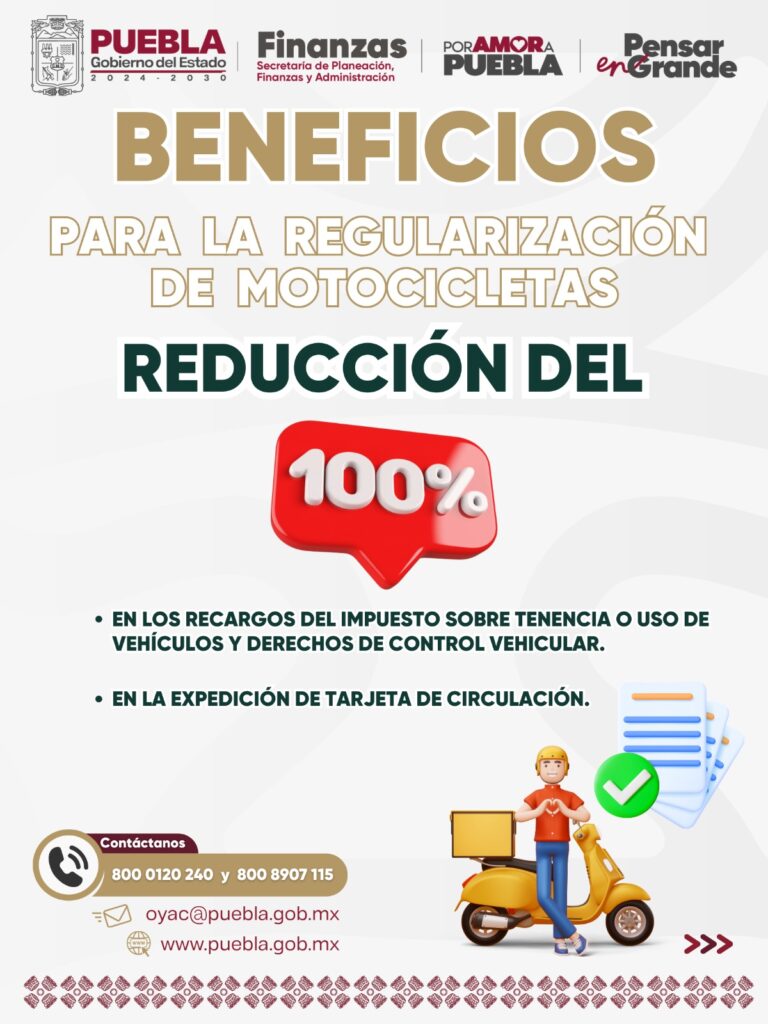 CIUDAD DE PUEBLA, Pue.— En el marco de la estrategia de Seguridad Pública y para dar cumplimiento a la reforma de la Ley de Movilidad y Seguridad Vial del Estado, el Gobierno de Puebla anunció una campaña de actualización de datos para propietarias y propietarios de motocicletas, vigente del 15 de agosto al 17 de diciembre de 2025.