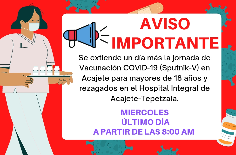 Confirmó que habrá nuevas jornadas para rezagados en hospitales de los municipios de Acatzingo, Acajete, El Seco y Tehuacán.
