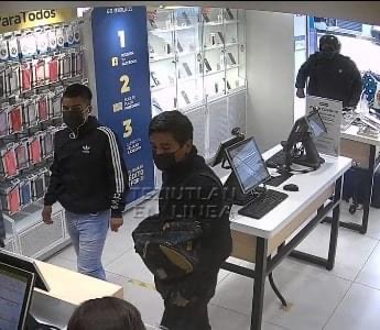 Por quinta vez asaltan tienda de celulares Macropay en Amozoc este día, tres sujetos en motoneta entraron al establecimiento para llevarse equipos, dinero en efectivo y pertenencias de los trabajadores del lugar.