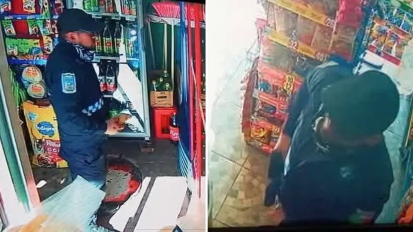 En el video se observa a un hombre con un uniforme similar al de la Policía Auxiliar durante un asalto a una tienda en la colonia San José La Laguna. Sin embargo, tras una revisión detallada de las imágenes, la corporación explicó que las insignias y distintivos que portaba el sospechoso no corresponden con los actuales, y que el sujeto vestía un uniforme antiguo.