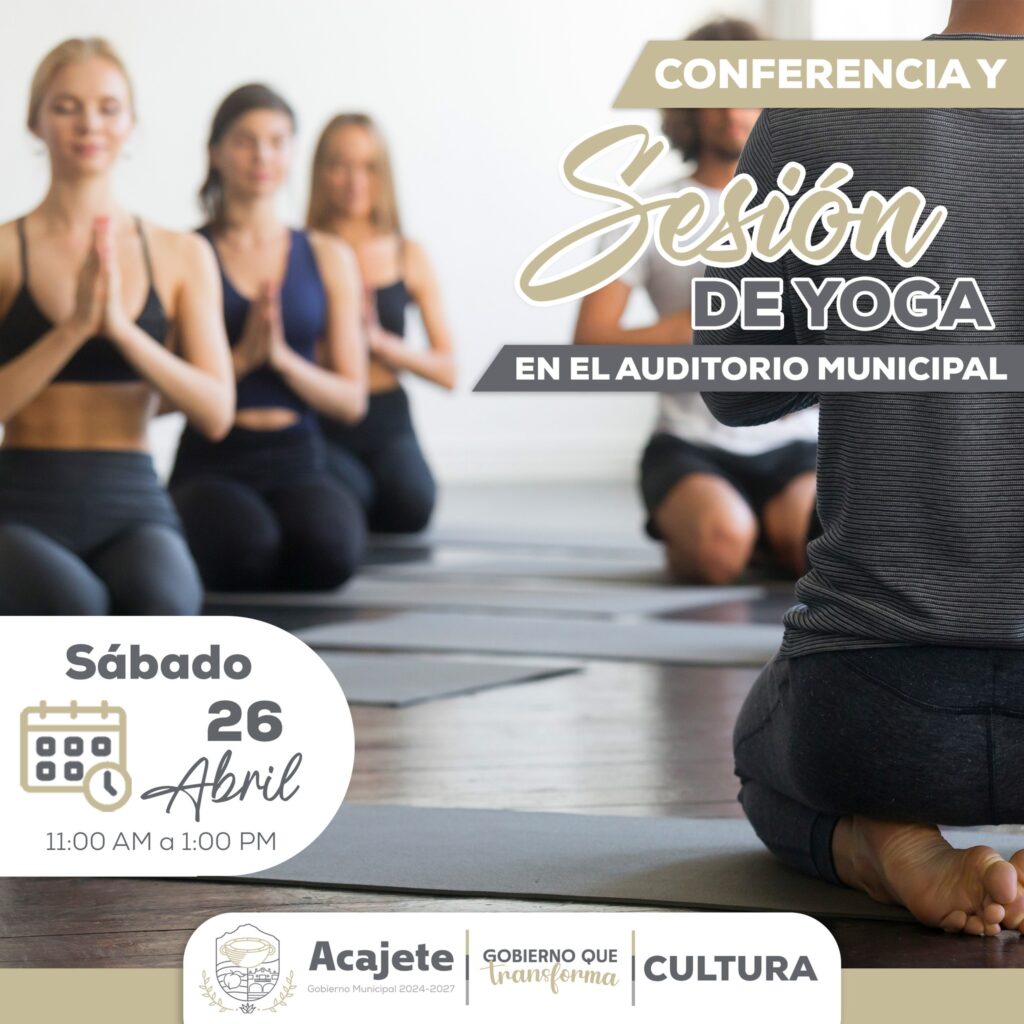 El alcalde Cristian Flores Flores, junto con el H. Ayuntamiento de Acajete 2024–2027 y el Área de Cultura, extienden una cordial invitación a todos los ciudadanos a participar en una mañana dedicada al bienestar y la reflexión, a través de una conferencia y sesión de yoga completamente gratuita.