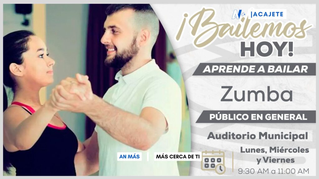 Si buscas una forma divertida de mantenerte activo, mejorar tu salud y llenarte de energía, esta es tu oportunidad. El H. Ayuntamiento, el SMDIF y el Presidente Municipal, C. Cristian Flores Flores, invitan a la ciudadanía a participar en las clases de Baile y Zumba que se llevarán a cabo en el Auditorio Municipal.