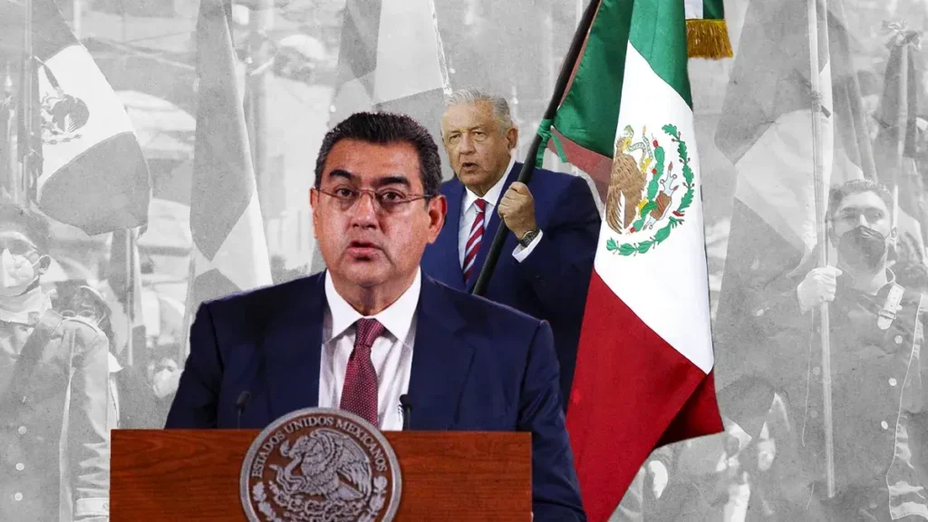 El gobernador del estado de Puebla, Sergio Salomón Céspedes Peregrina, asistió a la mañanera del presidente Andrés Manuel López Obrador (AMLO), en la que abordolos avances del IMSS Bienestar.