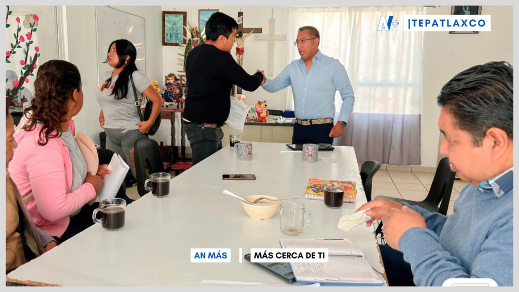 Tepatlaxco de Hidalgo, Pue. – El presidente municipal, C. Julio González, junto con personal del H. Ayuntamiento de Tepatlaxco de Hidalgo, sostuvo una reunión con el director y padres de familia de la Telesecundaria Natalia Serdán Alatriste, donde se abordaron temas clave para la comunidad estudiantil.