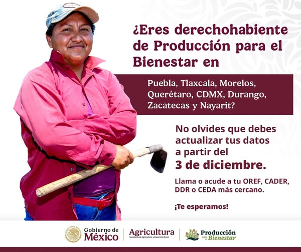 El Ayuntamiento de Acajete, encabezado por el presidente municipal Cristian Flores Flores, informó que todas y todos los beneficiarios del Programa Producción para el Bienestar (PPB) deberán acudir a actualizar sus datos, proceso indispensable para mantener su permanencia dentro del programa federal.