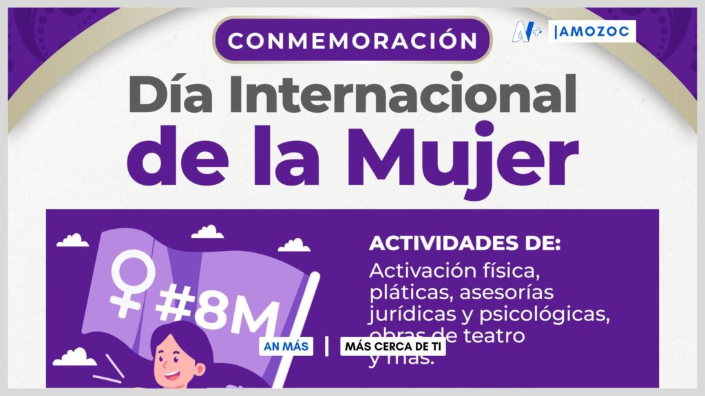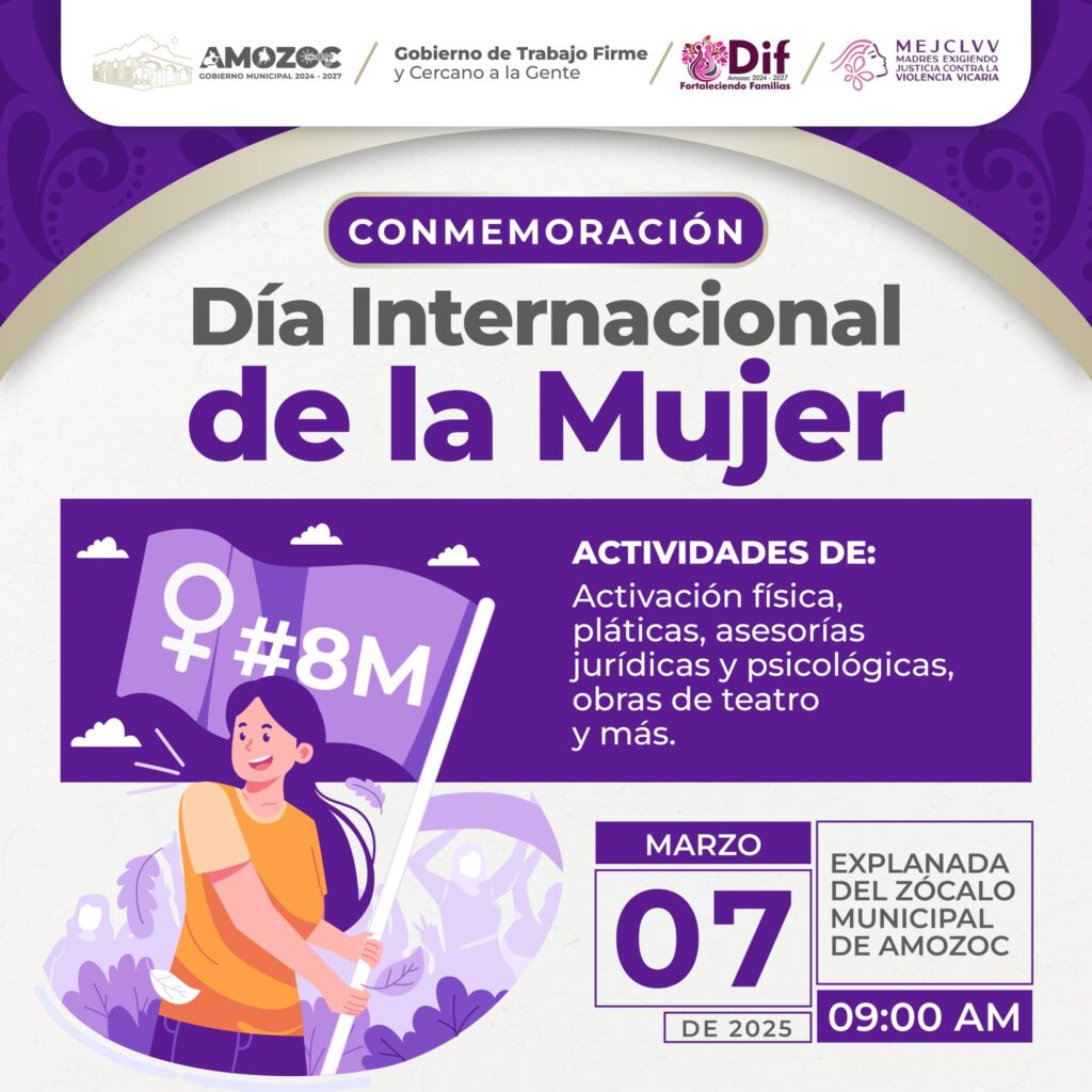 El próximo 7 de marzo, el Ayuntamiento de Amozoc, en coordinación con el Instituto Municipal de la Mujer, la Regiduría de Igualdad de Género y el DIF, llevará a cabo una jornada especial para conmemorar el Día Internacional de la Mujer.
