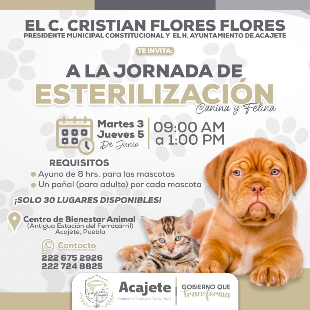 El Presidente Municipal, Cristian Flores Flores, y el H. Ayuntamiento 2024-2027, a través del Centro de Bienestar Animal, lanzan una importante campaña en favor de los animales de compañía: