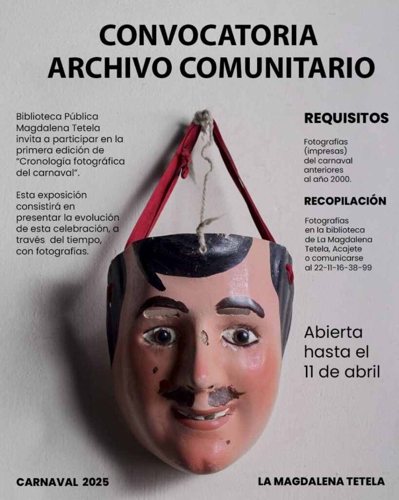 La Magdalena Tetela, Acajete, Pue. — La biblioteca pública de la junta auxiliar de La Magdalena Tetela ha lanzado una emotiva convocatoria dirigida a toda la comunidad carnavalera, con el objetivo de rescatar y compartir la memoria visual de una de las tradiciones más queridas de la región: el carnaval.