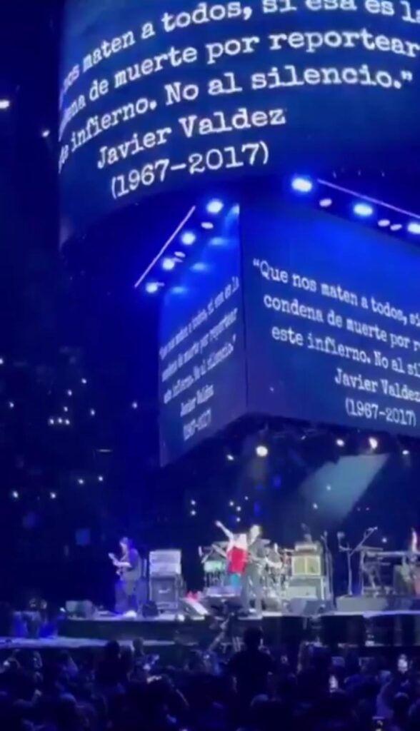 Uno de los momentos más conmovedores ocurrió cuando Caifanes interpretó “Antes de que nos olviden”. Mientras el público coreaba la canción, en las pantallas aparecieron los rostros de periodistas asesinados como Javier Valdez, Miroslava Breach y Rubén Espinosa.