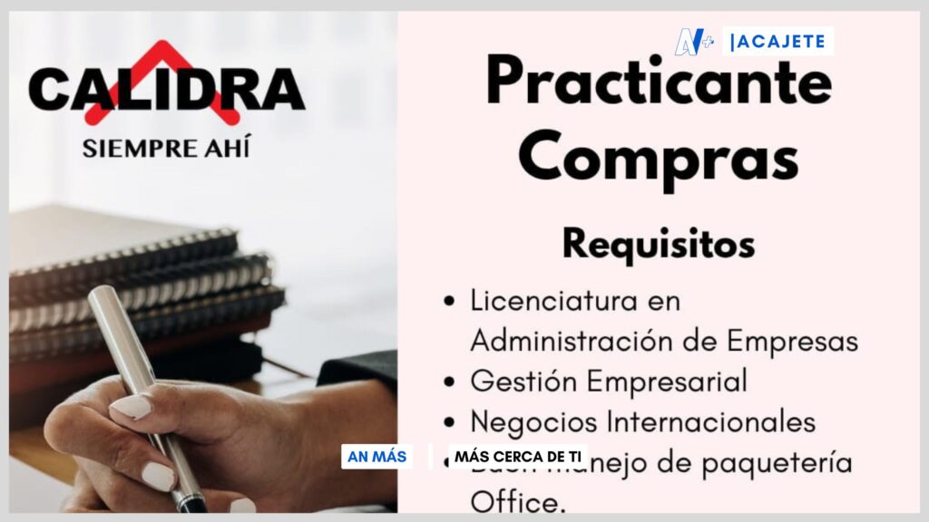 La empresa CALIDRA, con presencia en el sector industrial, está en búsqueda de un practicante para el área de Compras, dirigido a estudiantes de las siguientes carreras: