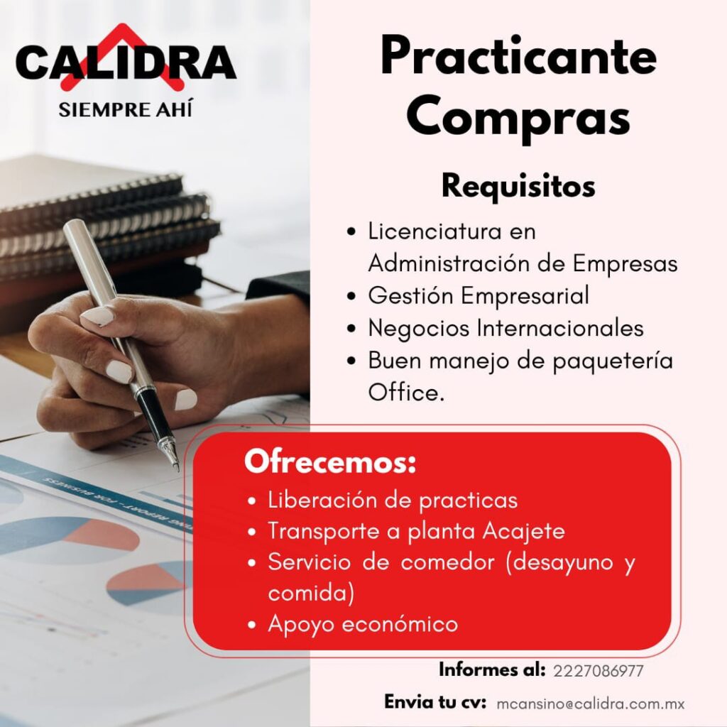 Solicita más información al número 222 708 6977 o envía tu CV al correo: mcansino@calidra.com.mx