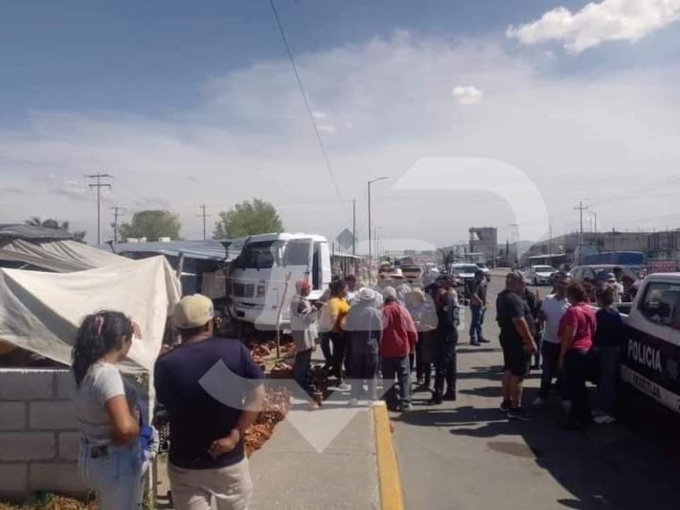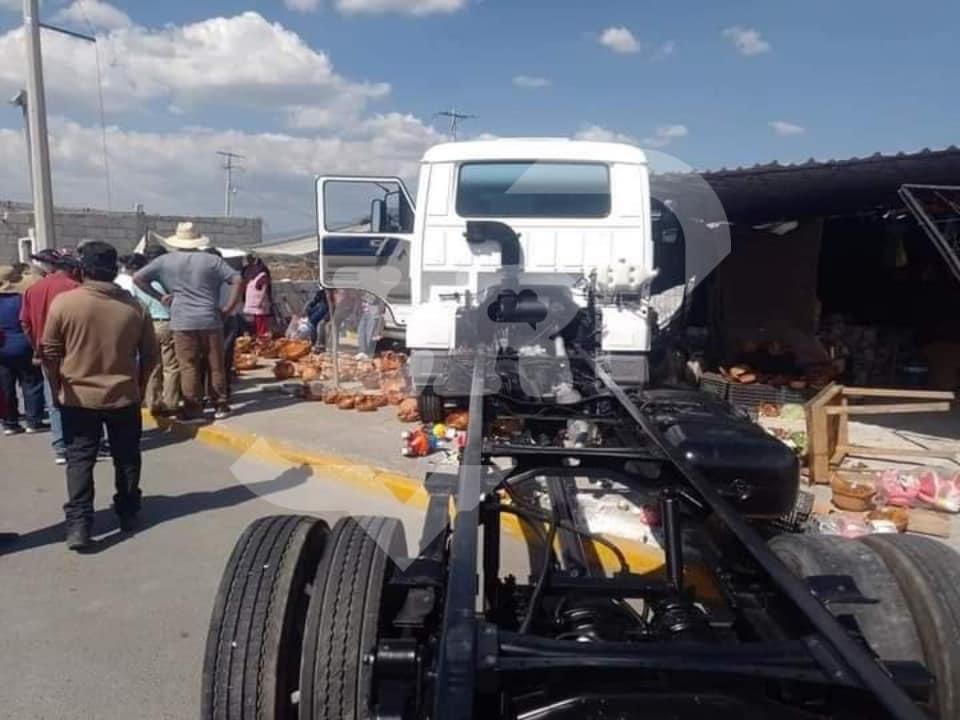 Acajete, Pue.- Un camión de carga se impactó contra los puestos de artesanías ubicados sobre la carretera federal Puebla-Tehuacán, a la altura de San Jerónimo Ocotitlán, en el municipio de Acajete.