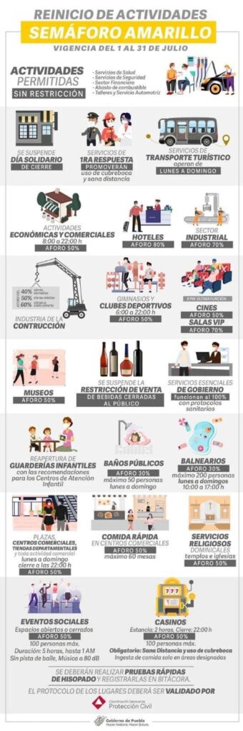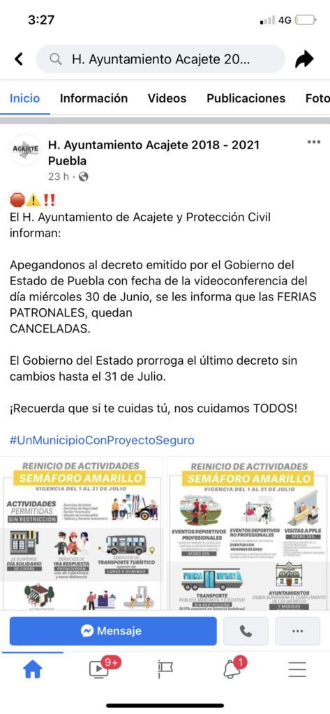 Apegandonos al decreto emitido por el Gobierno del Estado de Puebla con fecha de la videoconferencia del día miércoles 30 de Junio, se les informa que las FERIAS PATRONALES, quedan