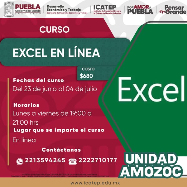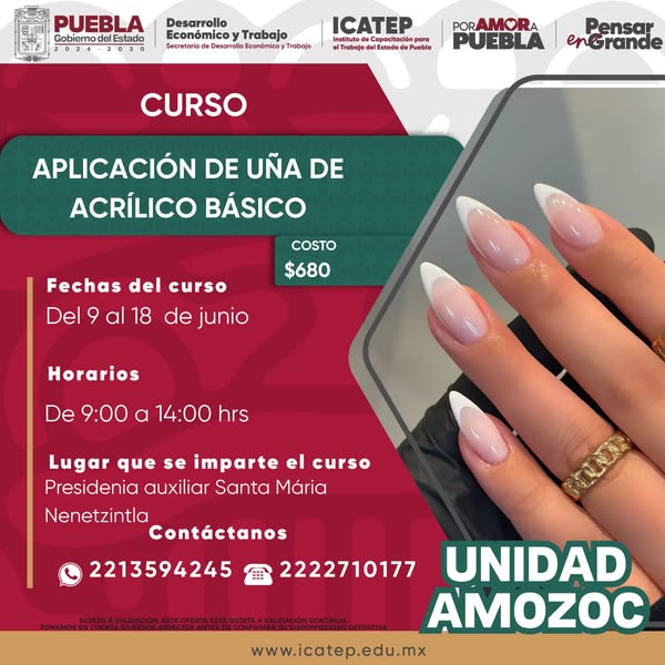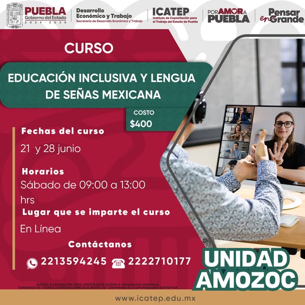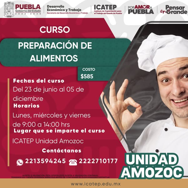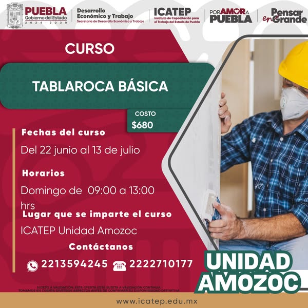 El Gobierno del Estado de Puebla, a través de la Unidad de Capacitación Amozoc, pone a disposición de la ciudadanía una amplia gama de cursos diseñados para mejorar tus habilidades y ampliar tus oportunidades laborales.