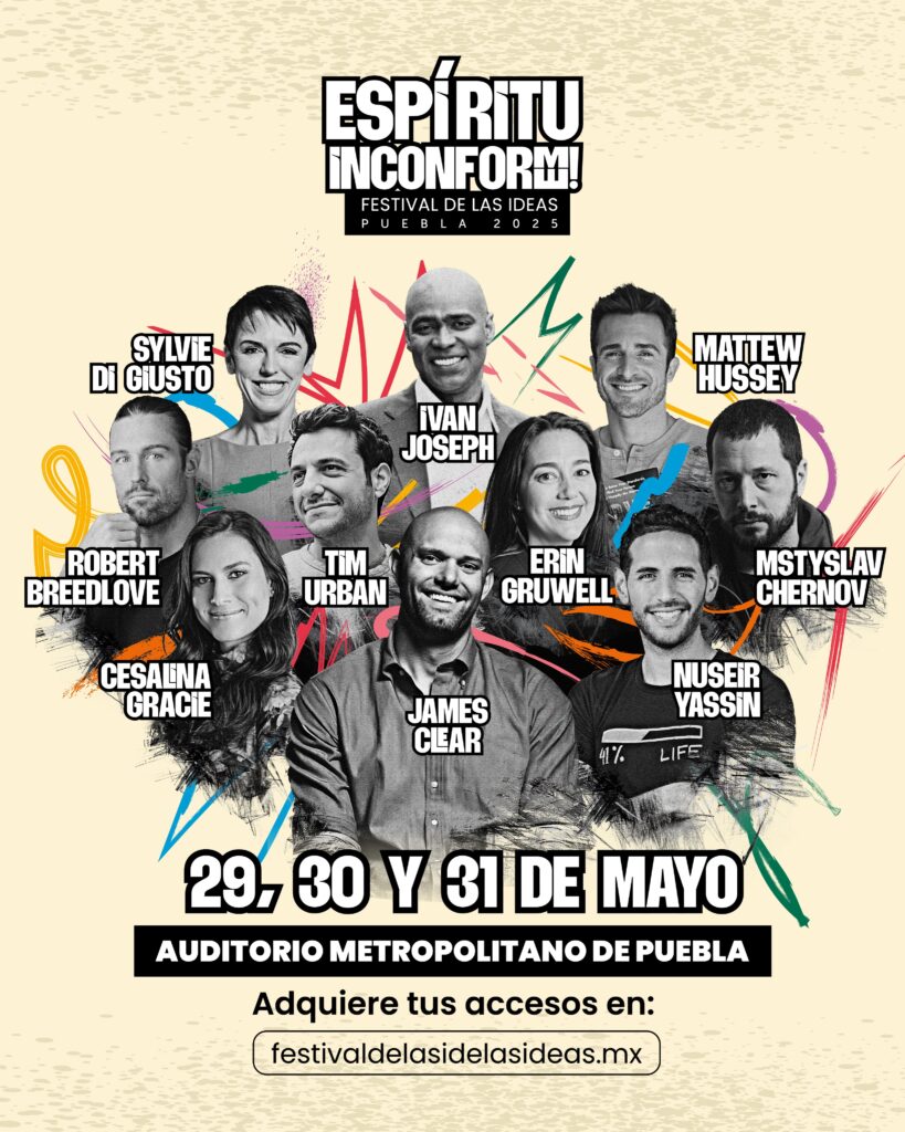 Bajo el lema “Espíritu Inconforme”, esta edición reunirá a más de 5,000 asistentes y contará con la participación de destacadas figuras nacionales e internacionales como Checo Pérez, Alfonso Cuarón, James Clear, Tim Urban, Mstyslav Chernov, Erin Gruwell, Robert Breedlove, Sylvie di Giusto, Ivan Joseph, Cesalina Gracie, Matthew Hussey y Nuseir Yassin.