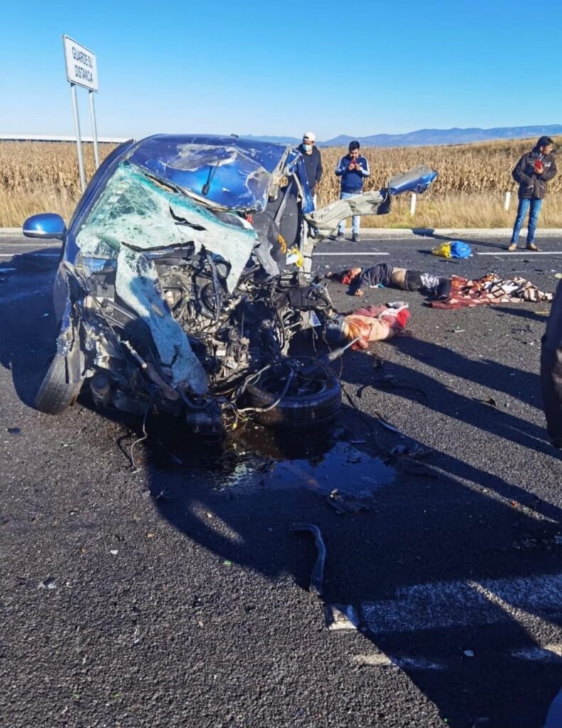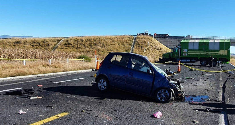 El terrible choque frontal entre un automóvil compacto y un camión de carga sobre la autopista Amozoc-Perote a la altura de la población de Ixtenco, dejó al menos dos muertos.