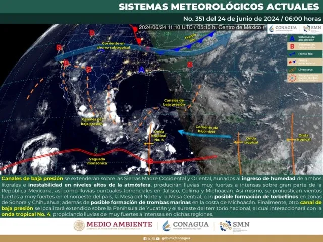 El Servicio Meteorológico Nacional (SMN) anunció el pronóstico del clima en México para este 24 de junio de 2024, el cual prevé más lluvias.
