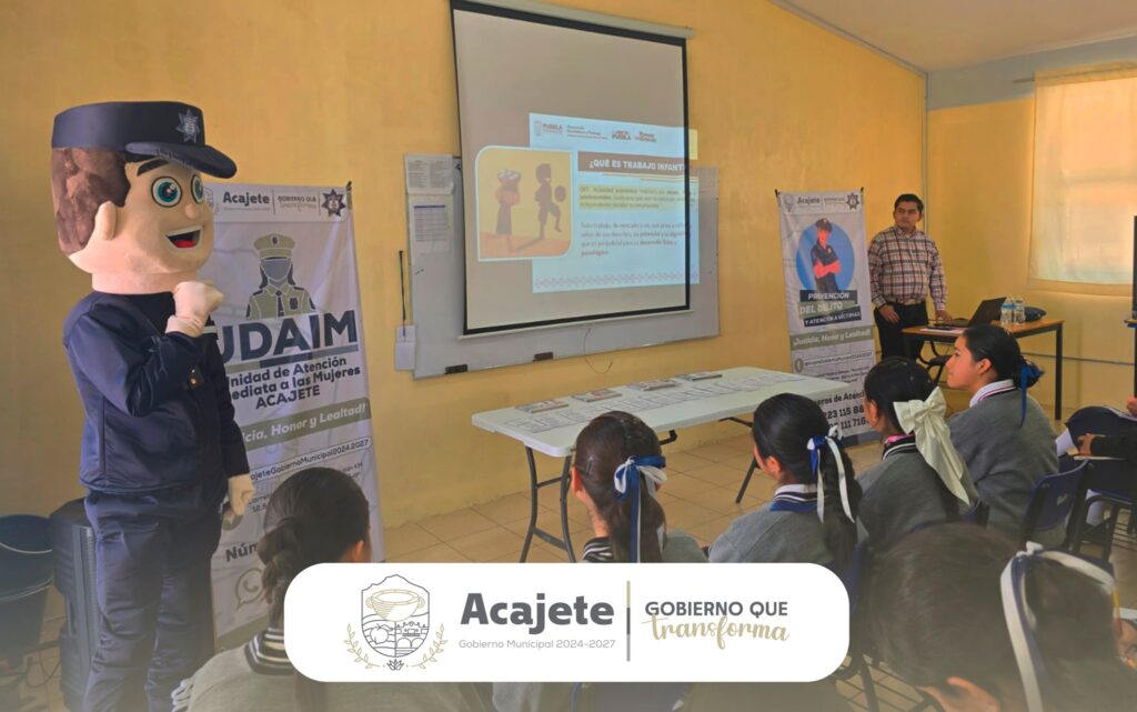 En respuesta a la indicación del Presidente Municipal de Acajete, Cristian Flores Flores, dieron inicio las jornadas de capacitación en escuelas del municipio con el objetivo de fomentar la participación activa de niñas, niños y jóvenes en la erradicación de la violencia de género y la prevención del delito.