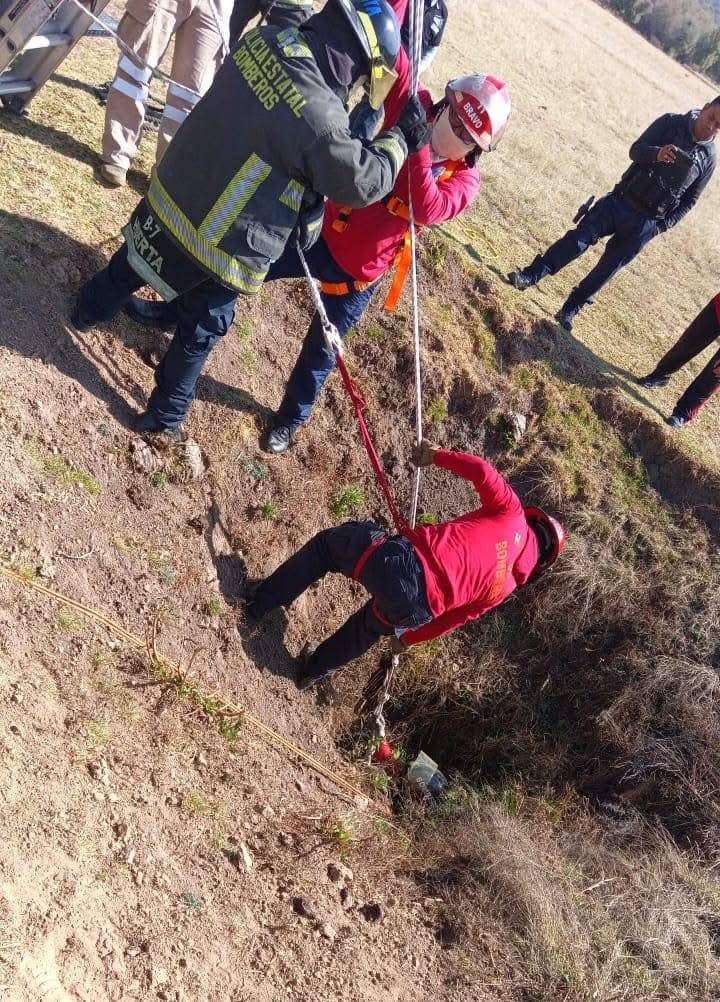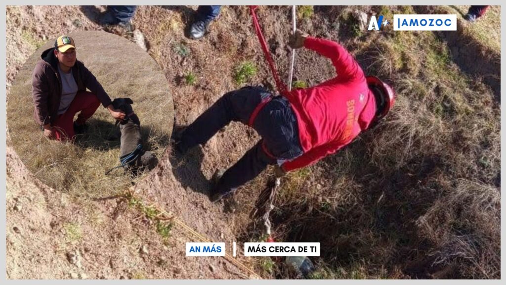 Amozoc de Mota, Pue.- La Dirección de Protección Civil y Bomberos de Amozoc, con apoyo de elementos de seguridad municipal, logró rescatar a un canino que cayó en un orificio de aproximadamente 20 metros de profundidad en la prolongación 12 Sur, en la colonia Ex Hacienda San Nicolás.
