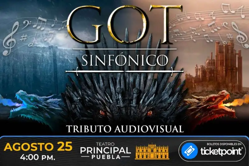También, los encuentras en la página de Ticketpoint, que es la boletera del evento, en este enlace: https://ticketpoint.mx/evento/puebla-got-tributo-sinfonico/.