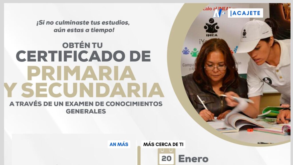 Acajete, Pue.- El Instituto Nacional para la Educación de los Adultos (INEA), en colaboración con el H. Ayuntamiento, invita a todas las personas interesadas a inscribirse en el programa de acreditación de estudios de primaria o secundaria. Esta iniciativa permite realizar un examen de conocimientos generales para obtener el certificado oficial que avala la culminación de estas etapas escolares.