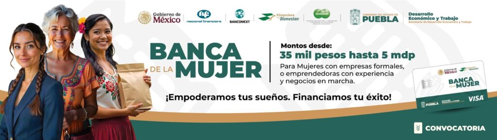 El H. Ayuntamiento de San José Chiapa invita a todas las mujeres emprendedoras del municipio a aprovechar una valiosa oportunidad de financiamiento a través del programa Banca de la Mujer, impulsado por el Gobierno de México y el Gobierno del Estado de Puebla.