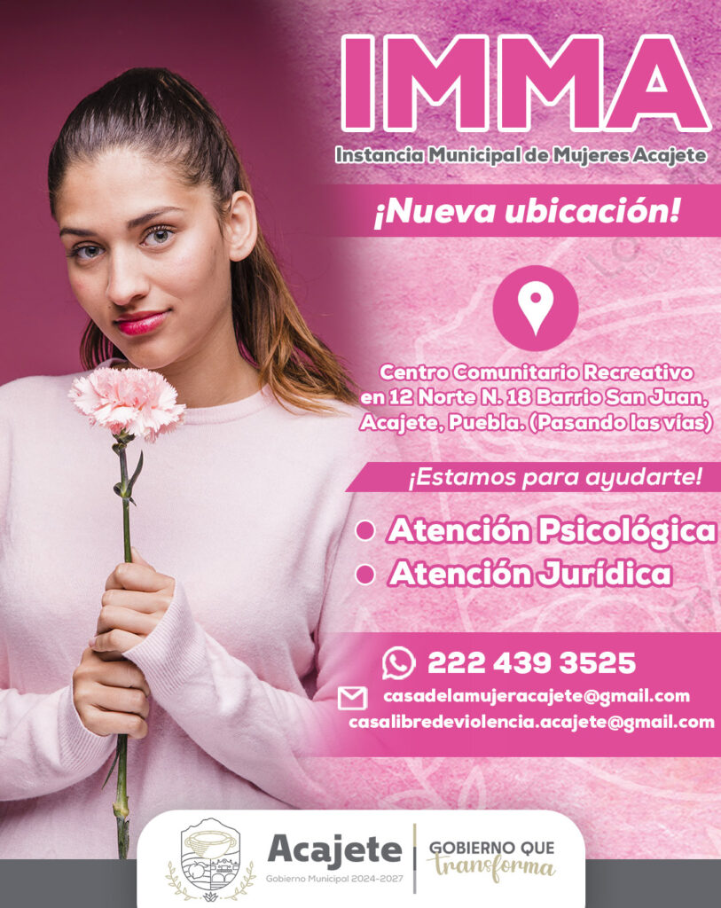 La Instancia Municipal de Mujeres de Acajete te acompaña y apoya