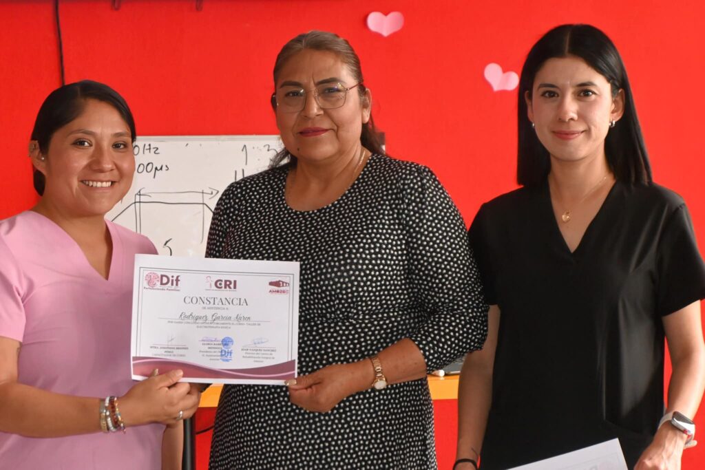 Amozoc, Puebla. – La presidenta del Sistema DIF Municipal de Amozoc, Gloria Bárrales, estuvo presente en el curso de electroterapia realizado en el Centro de Rehabilitación Integral (CRI), reafirmando el compromiso de la administración con la atención y mejora de la calidad de vida de las personas con discapacidad.