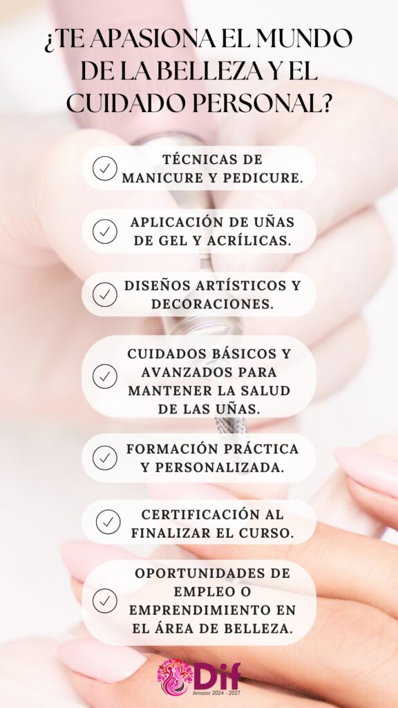 Ideal para quienes desean aprender técnicas de manicura, pedicura y aplicación de gel, este taller es perfecto para emprender en el mundo del cuidado personal.