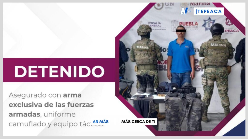 El sujeto portaba un arma de fuego de uso exclusivo del Ejército, así como equipo táctico y un uniforme camuflado, lo que encendió las alertas de los agentes durante el patrullaje en la zona.