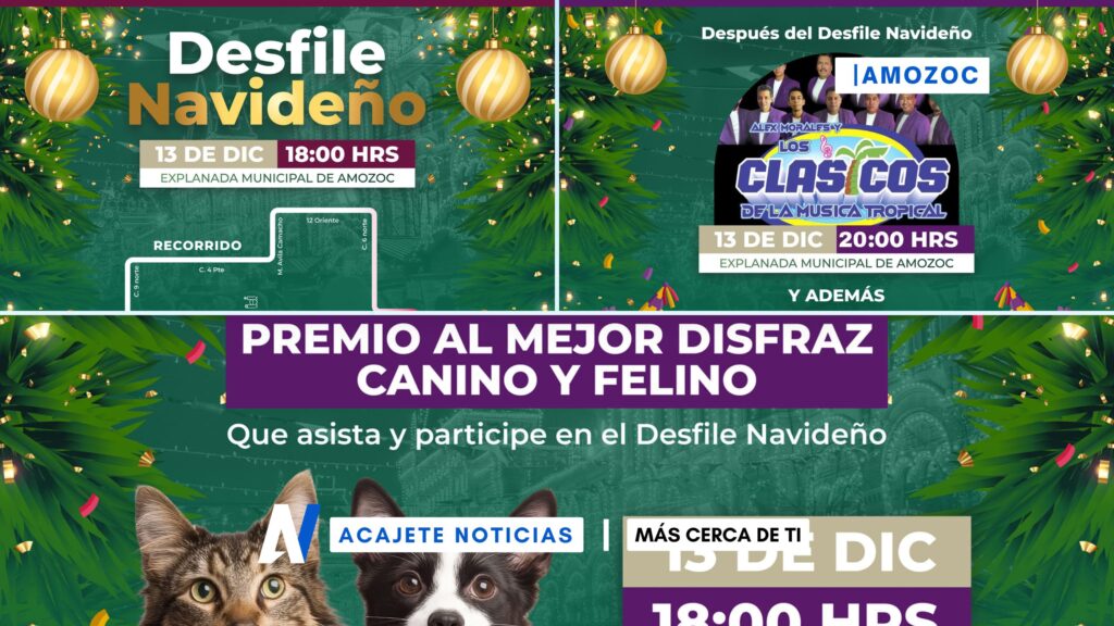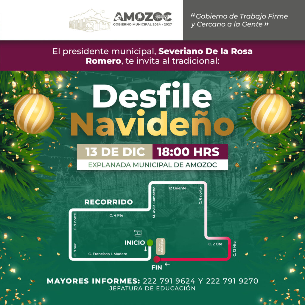 El desfile contará con espectaculares carros alegóricos, un despliegue de luces deslumbrantes y momentos inolvidables para toda la familia. Este evento es una oportunidad para vivir la magia de la Navidad en las calles de Amozoc y contagiarse del espíritu navideño.