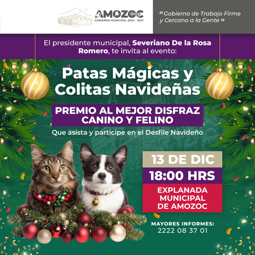 Como parte del desfile, se invita a los amantes de las mascotas a formar parte del contingente “Patas Mágicas y Colitas Navideñas”. Este espacio está diseñado para que perros y gatos, junto con sus dueños, desfilen luciendo sus mejores atuendos navideños.