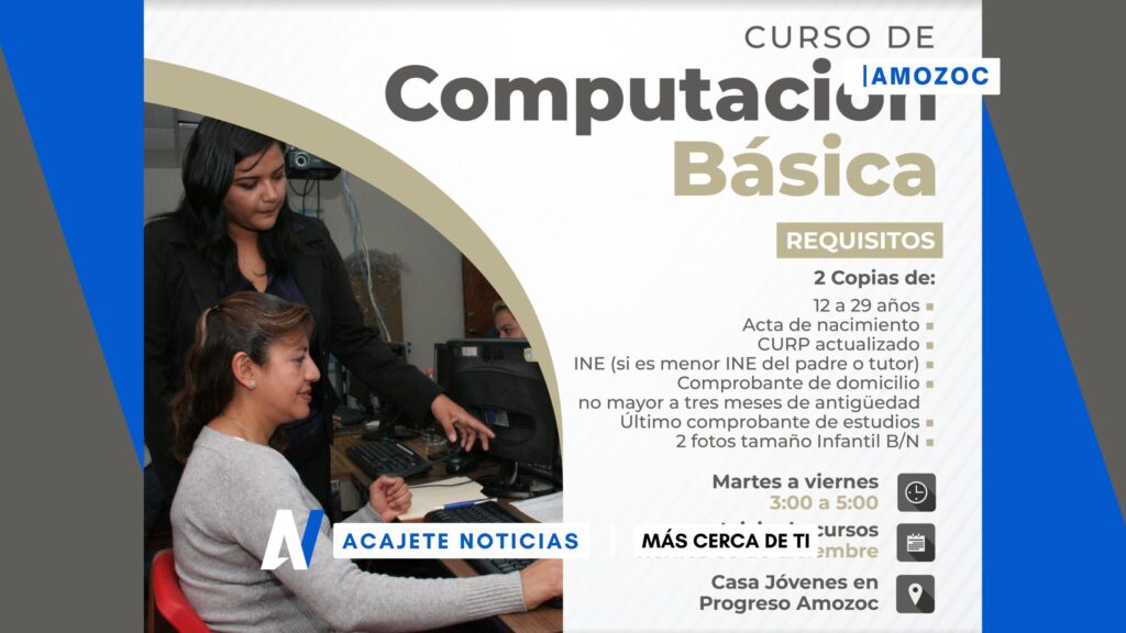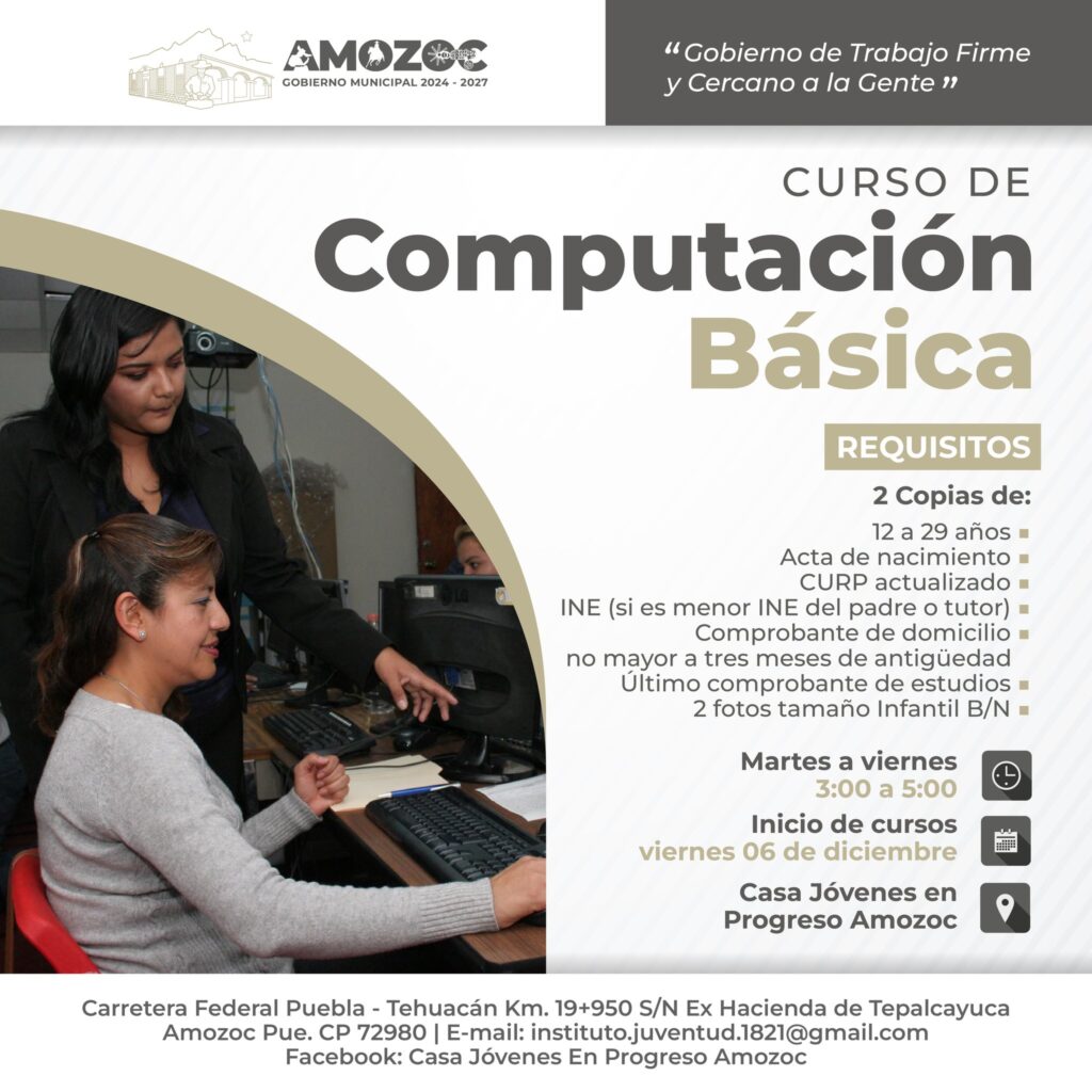 Amozoc de Mota.- En un esfuerzo por fomentar el desarrollo tecnológico y personal de la comunidad, el presidente municipal de Amozoc, Severiano de la Rosa Romero, ha lanzado una invitación abierta a todos los ciudadanos para participar en el Curso de Computación Básica, organizado por la Casa de Jóvenes de Amozoc.