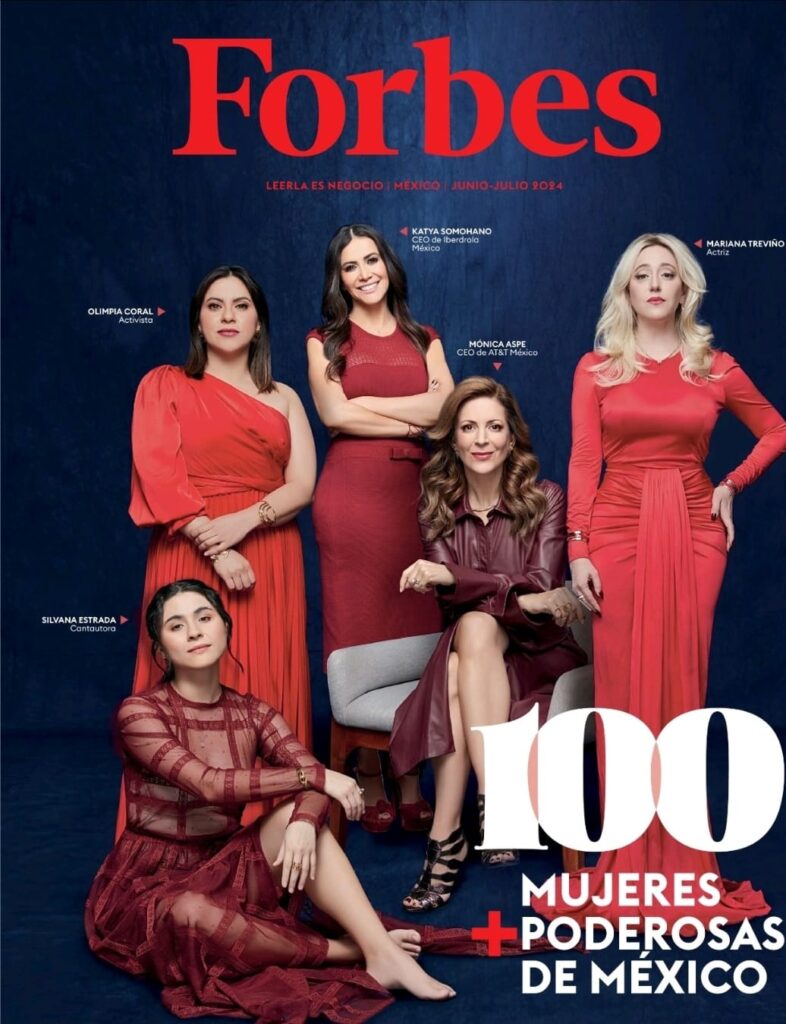 En la portada de la revista, correspondiente a la publicación del bimestre junio-julio, Olimpia Coral aparece junto a la actriz Mariana Treviño, la cantautora Silvana Estrada, la CEO de AT&T México, Mónica Aspe y la CEO de Iberdrola México, Katya Somohano.