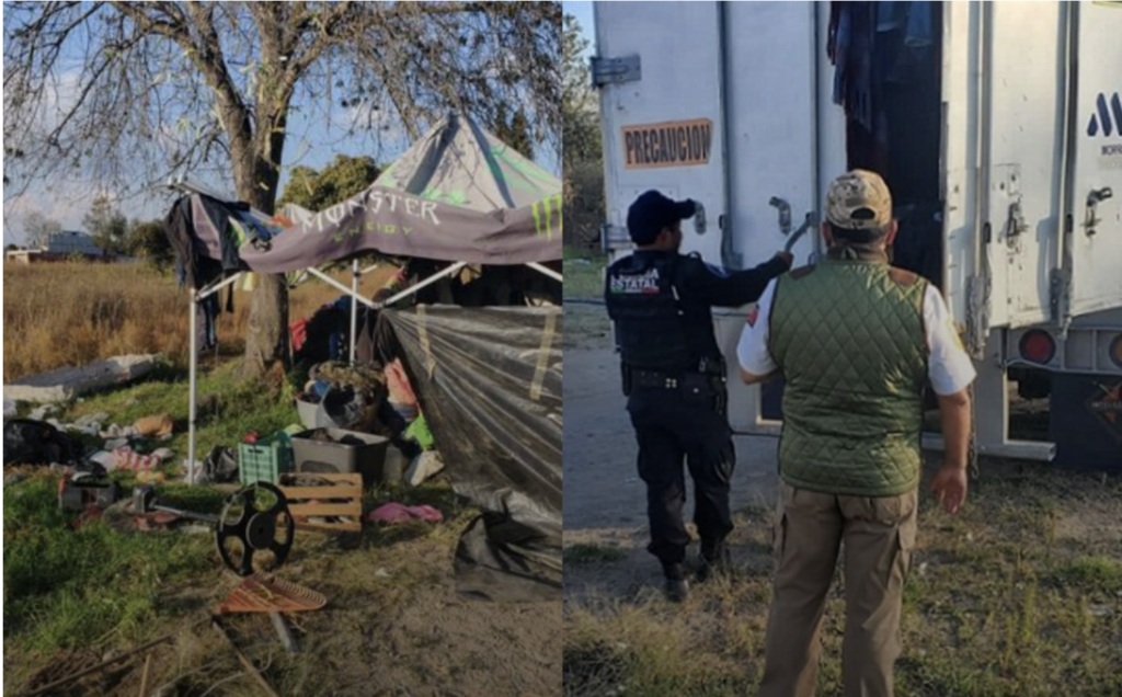 Según el comunicado del INM, los viajeros fueron encontrados en los municipios de Atlixco y Acajete cuando agentes de este ministerio mexicano encontraron un campamento y una caja de tráiler en un terreno baldío.
