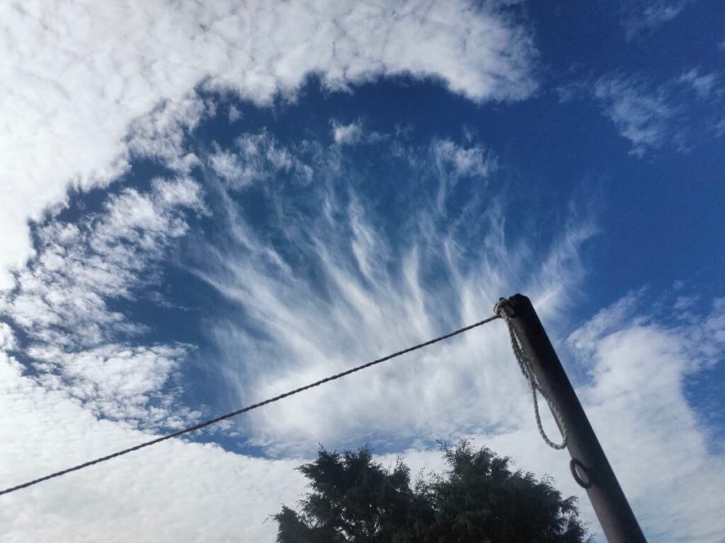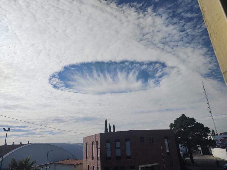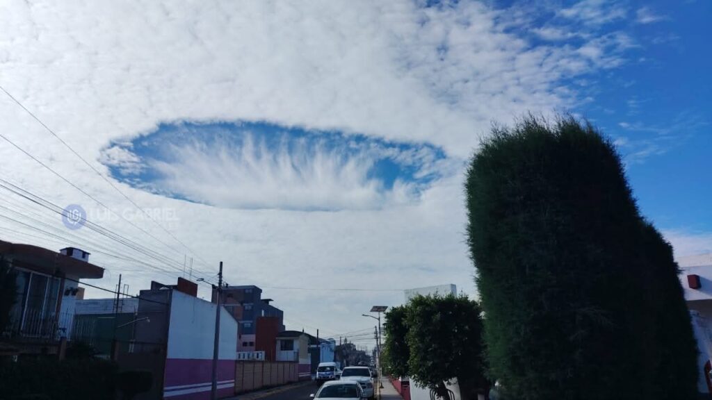De inmediato decenas de espectadores comenzaron a subir fotos y videos de lo que se trata de un “Skypunch” o “fallstreak hole” lo que se traducen al español como “agujero en el cielo”, “nube perforada” o, en términos meteorológicos oficiales, “cavum”.